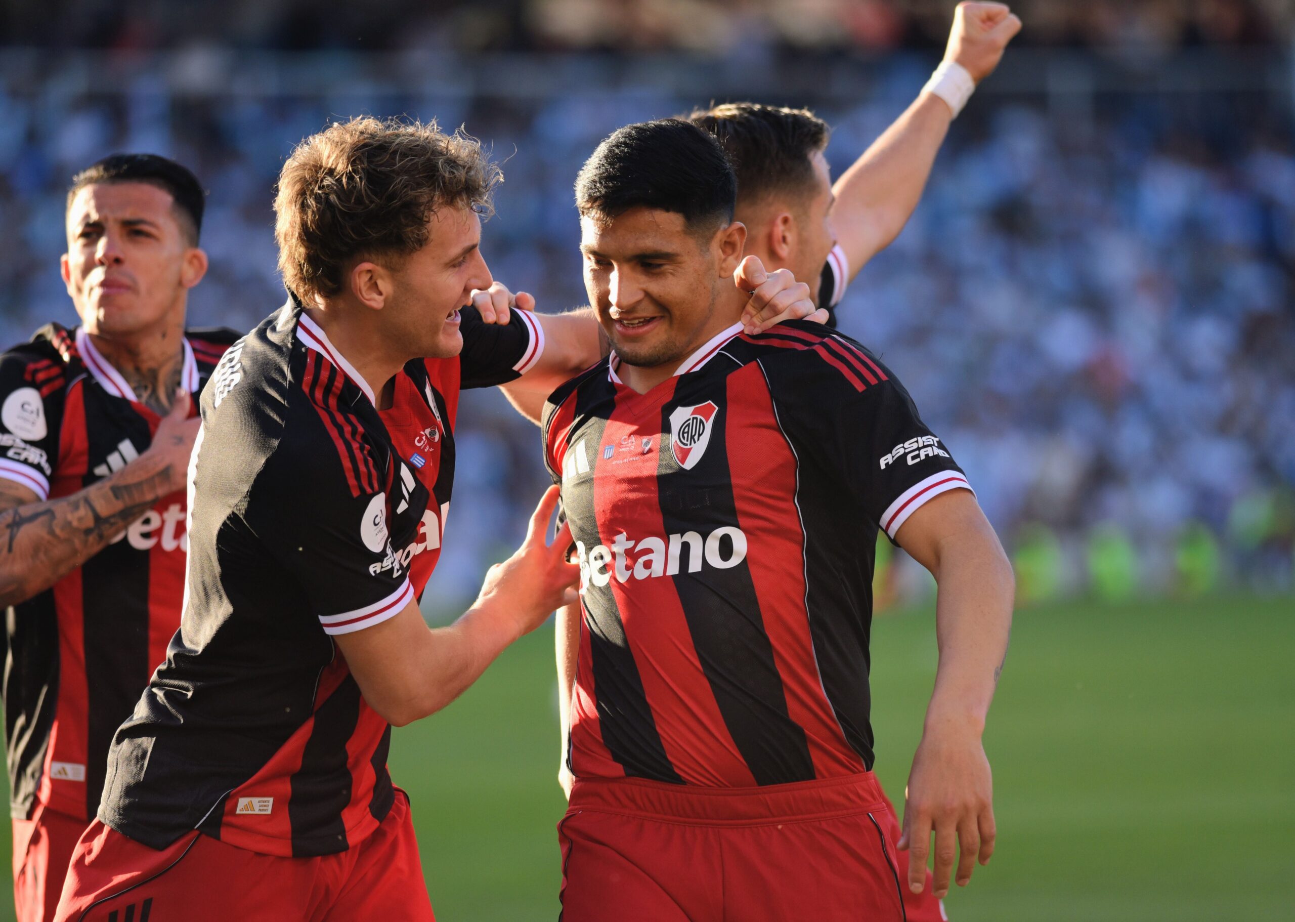 El atacante del Millonario le ganó la posición a Facundo Mura y tiró un centro de primera para la llegada de Maxi Salas, quien definió de primera desde el punto de penal para vencer la resistencia del arquero Facundo Cambeses. El autor del gol optó por no gritarlo por respeto a su paso por Racing, más allá de que en la previa se especuló con qué iba a hacer el jugador si lograba convertir, a partir de la turbulenta salida del equipo dirigido por Gustavo Costas para recalar en el elenco de Marcelo Gallardo.