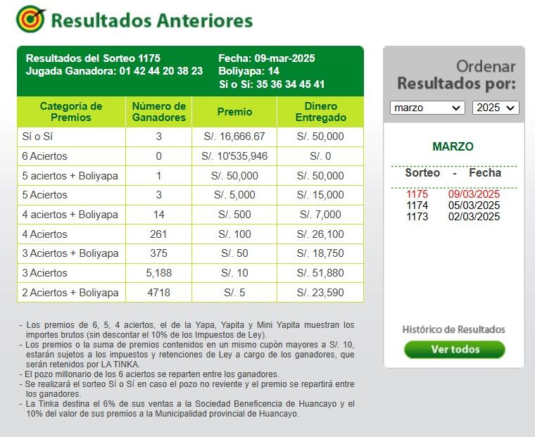 Lamentablemente, no hubo ganador y dado que ningún cliente acertó con los números de las bolillas, el premio se incrementa a S/ 11′016,609 millones de soles para el próximo sorteo de La Tinka, programado para el miércoles 12 de marzo.