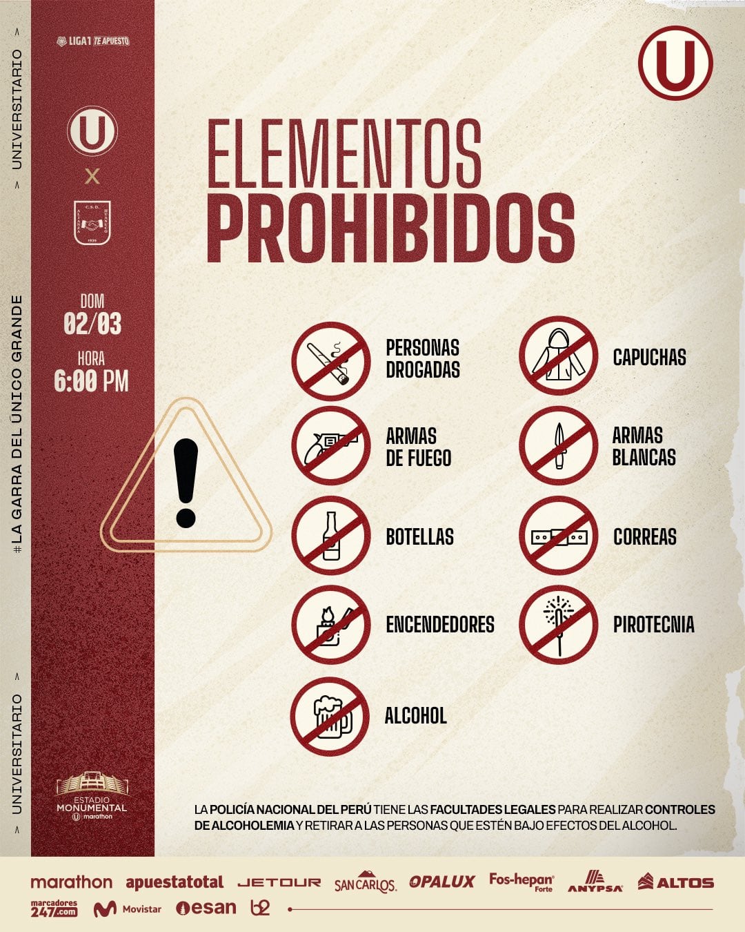 ¡Aviso desde el Monumental! Los organizadores del partido han dado a conocer la lista de elementos prohibidos para el duelo en casa.