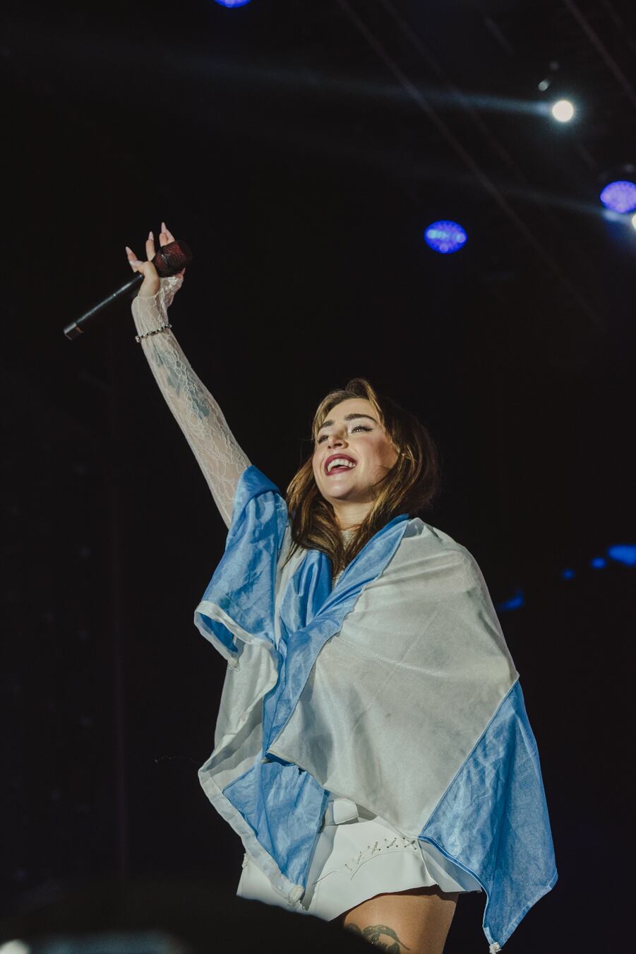 “Les quiero agradecer de verdad. Es una noche increíble, siempre quise estar acá, donde siempre vine a ver a mis artistas favoritos. Gracias por bancar tanto a sus artistas. ¡Aguante Argentina! ¡Aguante la música y aguante estos momentos!”, cerró envuelta en una bandera albiceleste, mientras el público comenzaba a migrar hacia el escenario Sur, donde más tarde estarían Los Piojos.