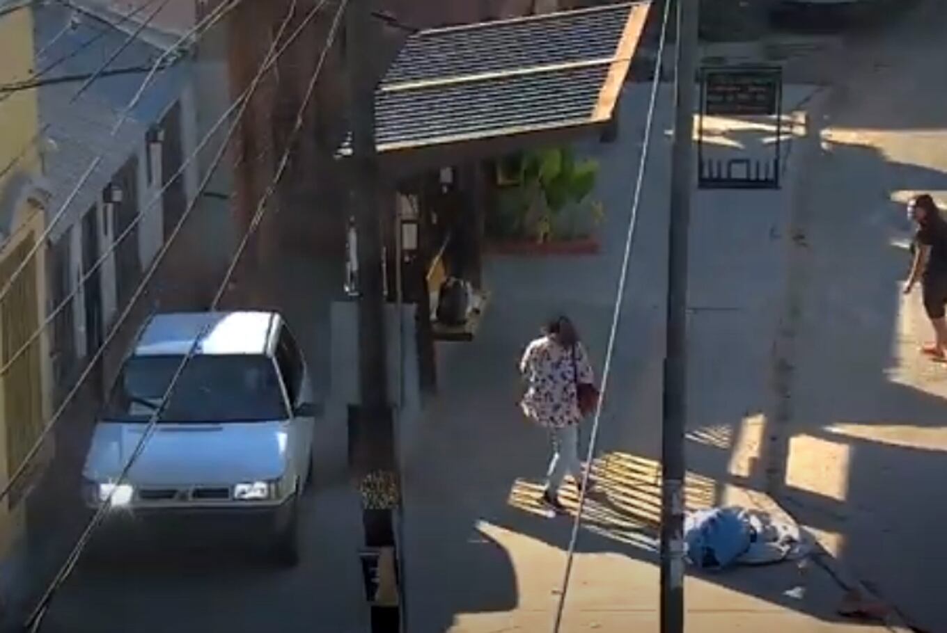 El ladrón intentó escapar a toda velocidad. En medio de su alocada carrera, al no poder avanzar por la cantidad de autos en una avenida, se subió a la vereda y casi se lleva por delante a una mujer que esperaba el colectivo en una parada.