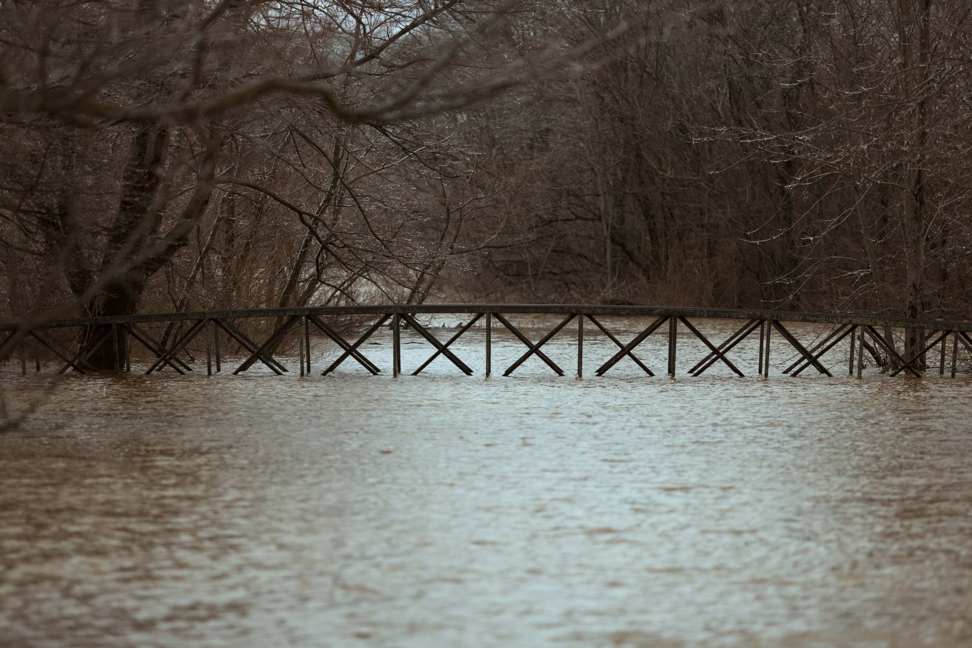 Inundación de un campo agrícola debido al aumento del nivel del mar y las intensas lluvias