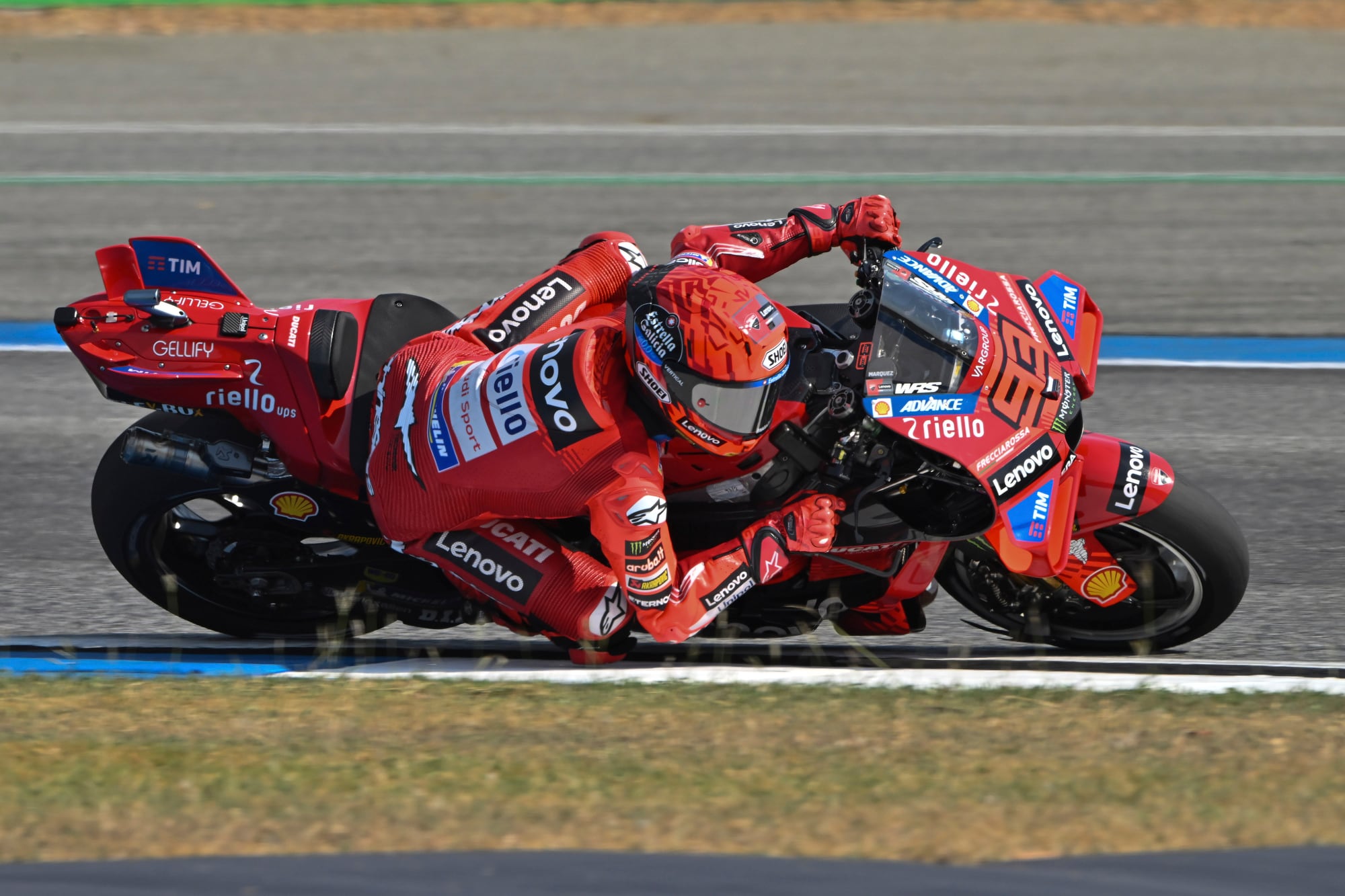 Sin el actual monarca en la pista, Jorge Martin (Aprilia) todavía no tiene fecha de regreso tras la caída en los test en Malasia que derivó en una doble intervención quirúrgica –sufrió la fractura de la cabeza del quinto metacarpiano de la mano derecha y de los metatarsianos tercero, cuarto y quinto del pie izquierdo-, Ducati desplegó su habitual poderío para arrasar en Buriram con un 1-2-3 escrito por los hermanos Márquez y Francesco Bagnaia, cerrando el podio.