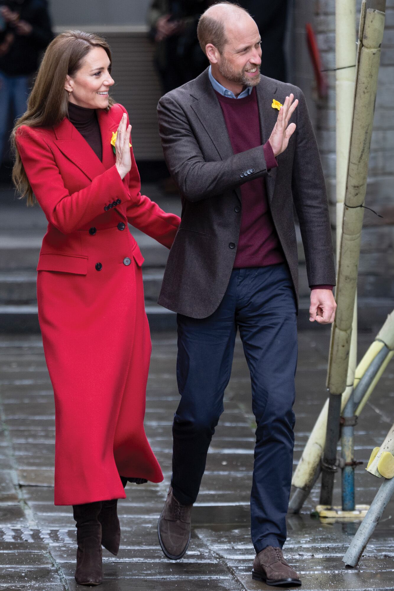 Esta nueva espontaneidad llegó para quedarse, tal como quedó en evidencia la semana pasada. Después de pasar las vacaciones familiares en Mustique (uno de sus lugares en el mundo) y hacer oídos sordos a las críticas por saltearse la ida a los Premios BAFTA (una decisión alineada con la intención del heredero de priorizar a su familia, en especial mientras sus hijos George, Charlotte, y Louis son chicos y él no ocupa la jefatura del Estado), el príncipe y la princesa eligieron Gales, la nación a la que le deben su título, para hacer el primer viaje oficial de Kate desde que se retiró de sus deberes reales en marzo del año pasado. Sonrientes y portando en sus solapas narcisos, el símbolo nacional, llegaron en tren a Cardiff y generaron gran revuelo a su alrededor, con la gente expectante por verlos y saludarlos. Kate, además, demostró su apoyo a la tierra en la que vivieron entre 2011 y 2013, cuando William estaba destinado en Anglesey para entrenarse para la Real Fuerza Aérea, a través de su outfit: llevó un espectacular abrigo rojo, el color del dragón que aparece en la bandera galesa.