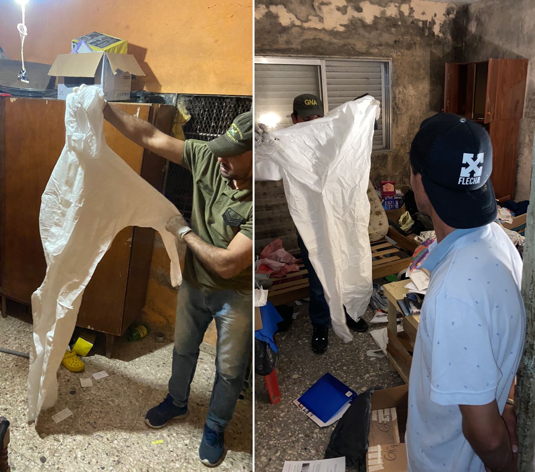 Fuentes del caso indicaron que los mamelucos blancos que cubren la totalidad del cuerpo de los cuatro presuntos soldados narcos tenían una doble función: ocultar sus rostros y, a la vez, mantener fuera de la vista cualquier tatuaje con los que puedan ser identificados. Lo mismo ocurre con los guantes quirúrgicos que llevan, una imagen que ya se vio en el video de una amenaza al Servicio Penitenciario Federal adjudicada a Los Monos, la banda narco rosarina.