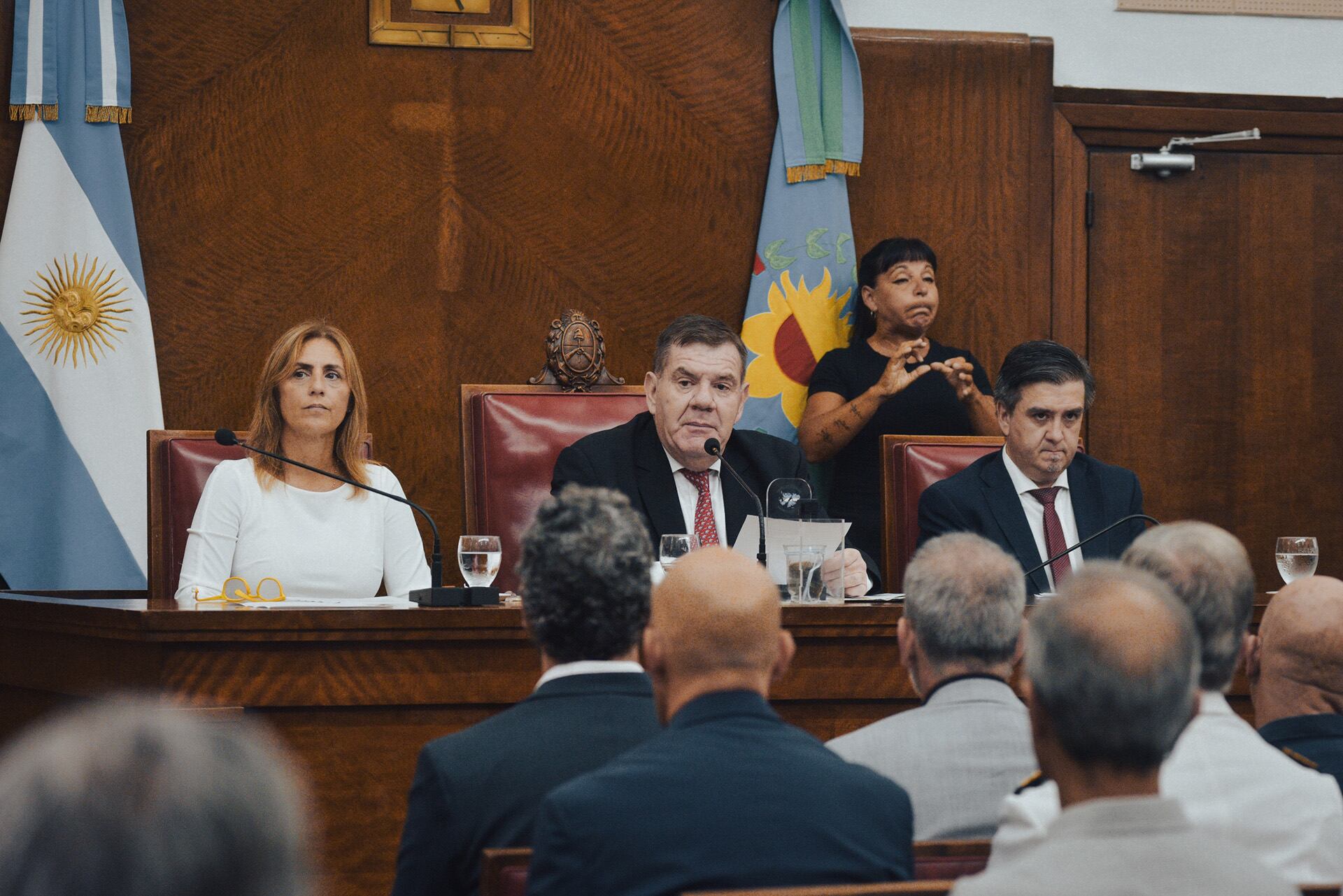 “Me tildan de sheriff, de insensible, de que me excedo en mis atribuciones como intendente… No hay que tenerle miedo a la palabra ‘dureza’, yo no lo tengo miedo, estoy convencido de que es lo que necesitamos”, fue el pasaje más destacado del discurso del jefe comunal, frente a los ediles de todos los bloques, funcionarios, empresarios y representantes de las fuerzas de seguridad.