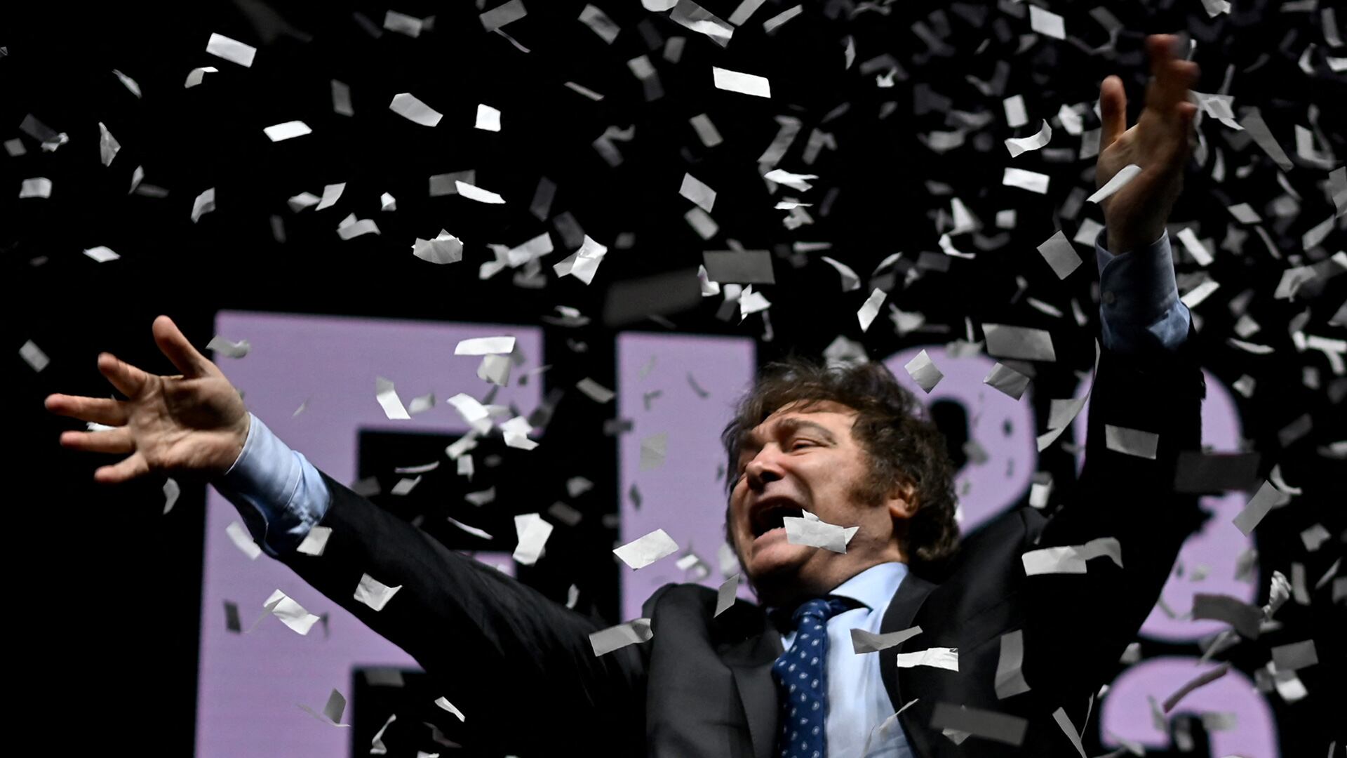 Milei presentará su libro y cantará en el Movistar Arena. (Photo by Luis ROBAYO / AFP)